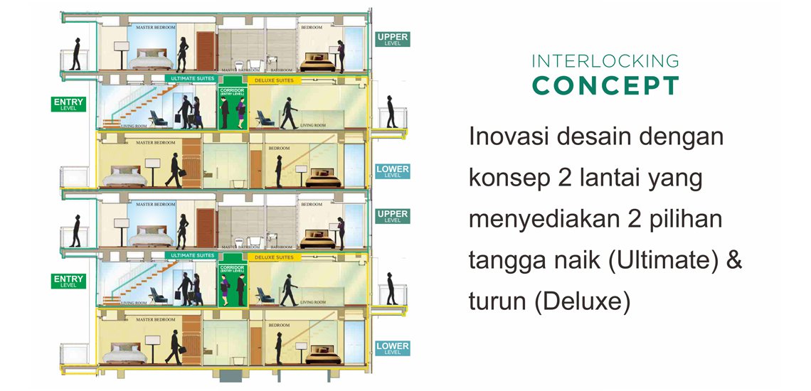 All tower buildings have an exclusive lobby with a comfortable ambience, spacious, clean, and luxury. It does not let you wait while waiting, even for a long time. Besides that, it is completed with a private elevator (double private elevator) which does not disturb your privacy.